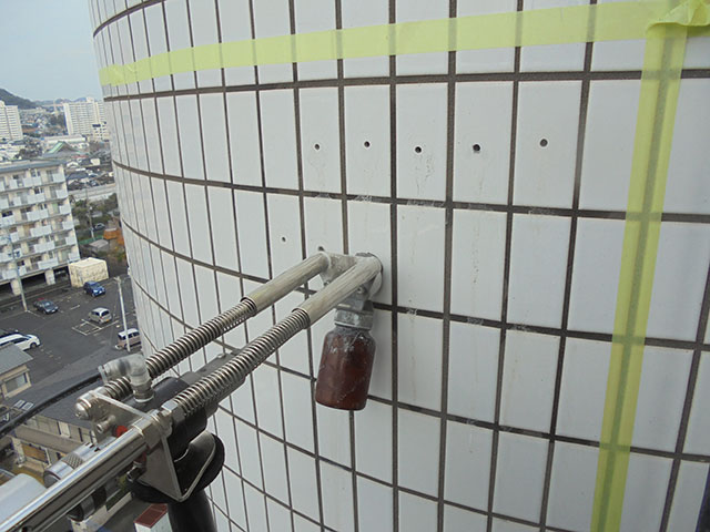 外壁タイル補修(エポキシ樹脂注入) 2025年6月10日 最終更新日時 : 2025年6月10日 scuderia9 外壁タイル補修(エポキシ樹脂注入)とは、外壁タイルの浮きや剥離を防止するために、エポキシ樹脂という接着力の高い材料をタイルの裏側に注入し、再接着する補修方法です。
